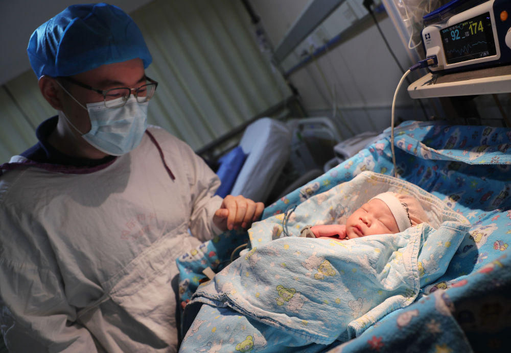 2021年7月1日凌晨,在中国福利会国际和平妇幼保健院,一位爸爸在看自己的女儿。她是该院当日首名新生儿。