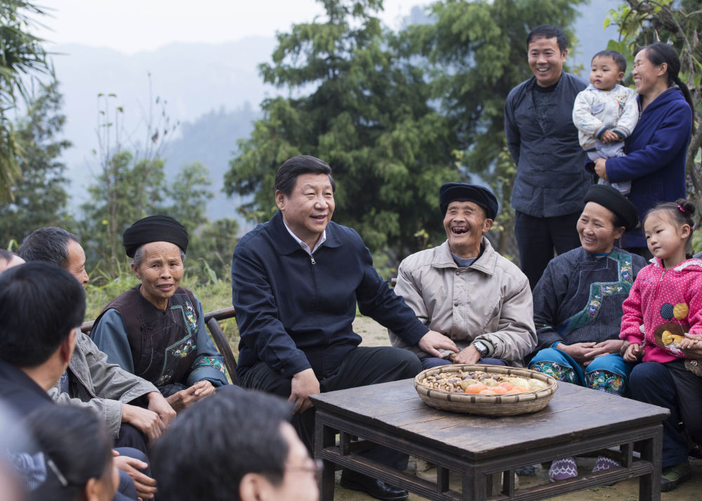 2019年4月15日,习近平在重庆石柱土家族自治县中益乡华溪村同村民代表、基层干部、扶贫干部、乡村医生等围坐在一起,共话脱贫攻坚。