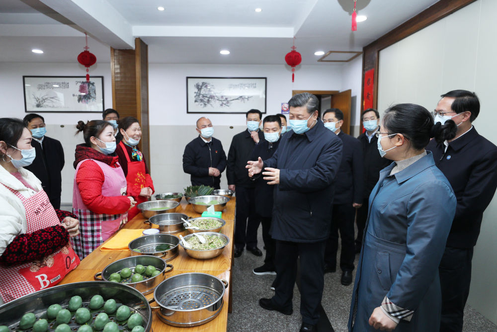 2020年3月30日,习近平在浙江湖州市安吉县天荒坪镇余村了解农家乐经营和特色农产品销售情况。