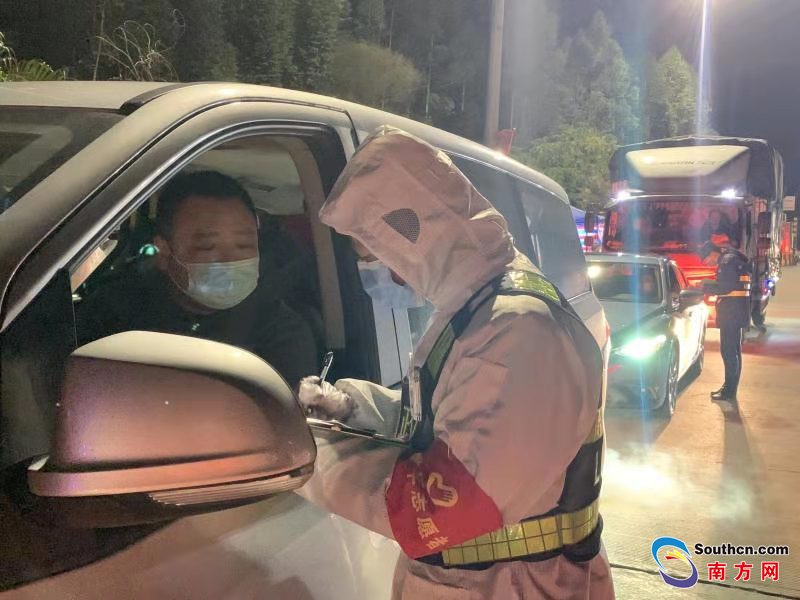 午夜的二广高速粤桂省界联合检疫点气温只有9摄氏度。不远处,路政四中队90后团员蓝育培正在为车辆进行信息登记,他是连南瑶族人,家里的老幺,他说:“父母知道我在一线,他们都很支持我参加这次防疫行动,父母都是老党员,还特意交代我,这个时候正是党需要我的时候,作为一名共青团员,就是要听党话跟党走,做好防护不要怕。”