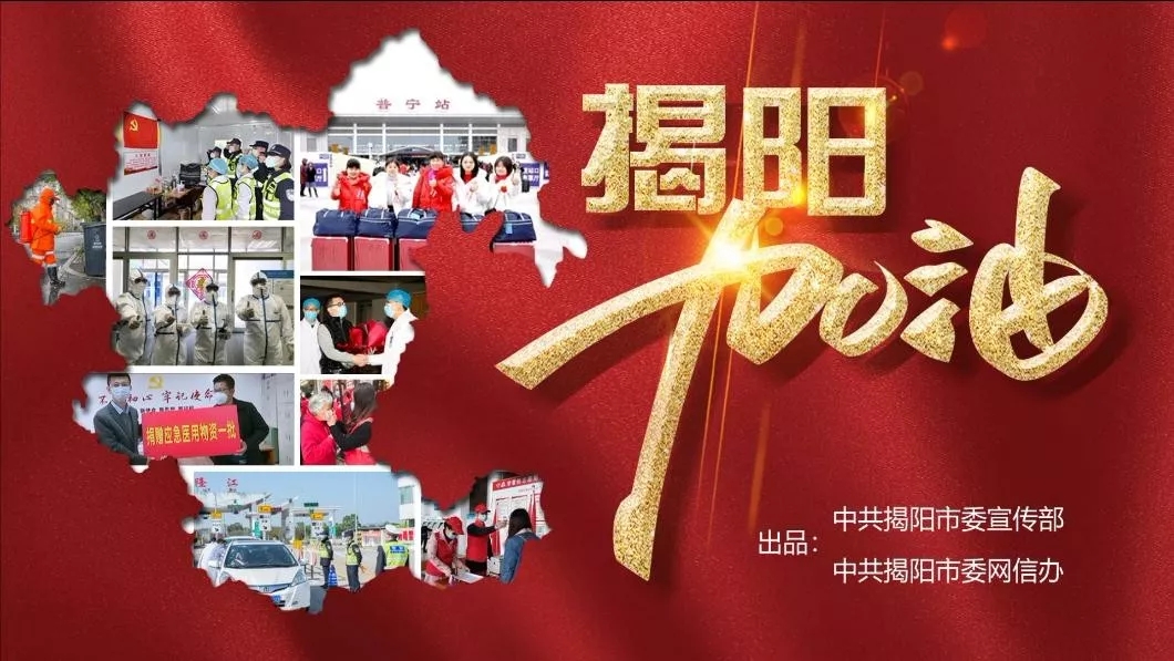 为向奋战在抗疫一线的英雄们致敬,中共揭阳市委宣传部、中共揭阳市委网信办联合组织创作拍摄我市抗击疫情主题MV《揭阳加油》。通过感人的镜头和动听的音乐,展现全市干群万众一心、众志成城、联防联控、群防群治、抗击疫情的良好精神风貌,讴歌奋战在一线的医疗卫生、公安、交管、物资保障等部门和各县(市、区)、镇街以及乡村(社区)工作者等人员,进一步激励全市干群勇往直前,继续努力,坚决打赢疫情防控阻击战,为夺取全面建成小康社会伟大胜利而奋斗!
