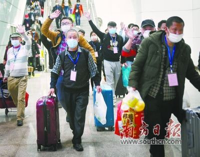 湖北籍务工人员抵达广东。 南方日报记者 肖雄 郑一见 摄
