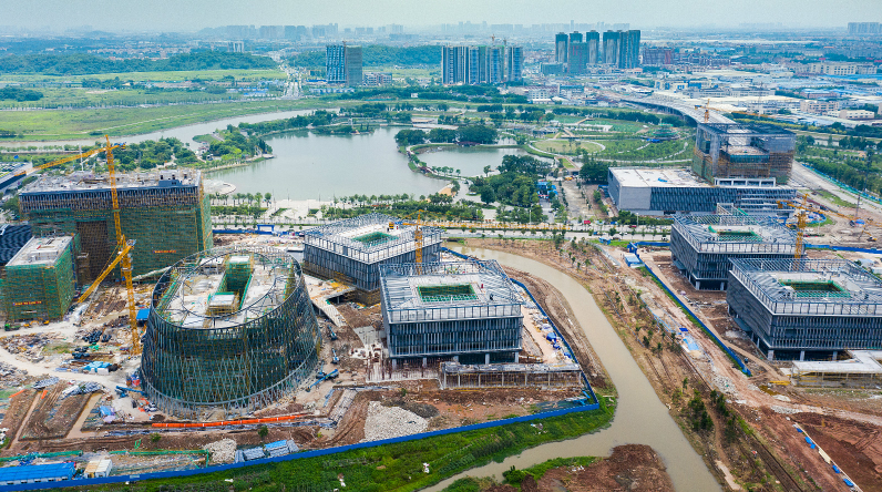 季华实验室运营两载初见成效,位于佛山南海三山文翰湖旁的一期项目即将建成启用。(摄影:周春)