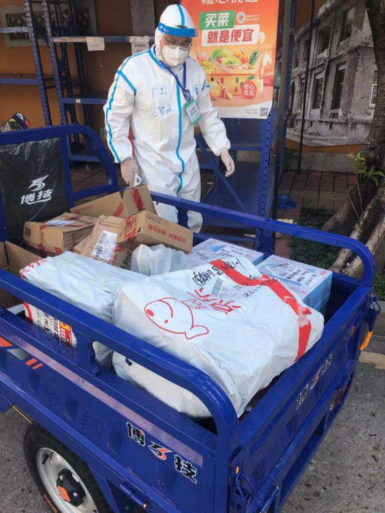 社区封闭管理后,物资只能到达社区集散点,最后一公里的配送成为了大问题。封闭初期,社区内的运输工具缺乏,大家只能靠着人力一件两件的往里送,但是居民的大米、肉菜、药品等急需的生活物资,罗逸浩就驾驶着自家的小汽车,装满货物,穿行在各个小区之间,将必需品一件件交到社区居民的手中。
