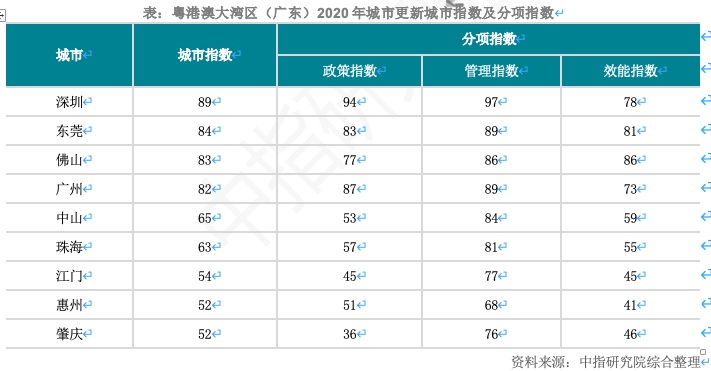 《2020中国城市更新评价指数(广东省)研究报告》18日发布。《报告》显示,2020年粤港澳大湾区广东区域9市城市更新所处的发展阶段差异较大,梯度分布明显。其中,深圳、东莞、佛山、广州整体更新水平较高,在政策、管理、效能方面表现突出。详情