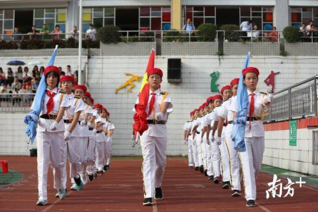 9月2日,今年秋季学期的开学第一天,广东省高校和各中小学结合开学典礼开展“我为祖国升国旗”主题教育活动。师生唱响《我和我的祖国》、家长分享港珠澳大桥建设点滴……生在和平的祖国,开学就是这么幸福。