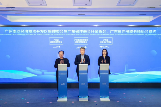 广州南沙经济技术开发区管理委会与广东省注册会计师协会、广东省注册税务师协会签约。主办方供图