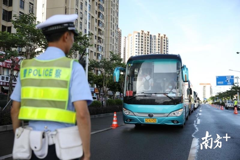 【珠海 市实验中学考点】因为要检测体温,接到通知8点前到考场,7点半同学们就全部上车上车,一路交警开路,不到20分钟就顺利到达考点。(记者:关铭荣 文秋仪)