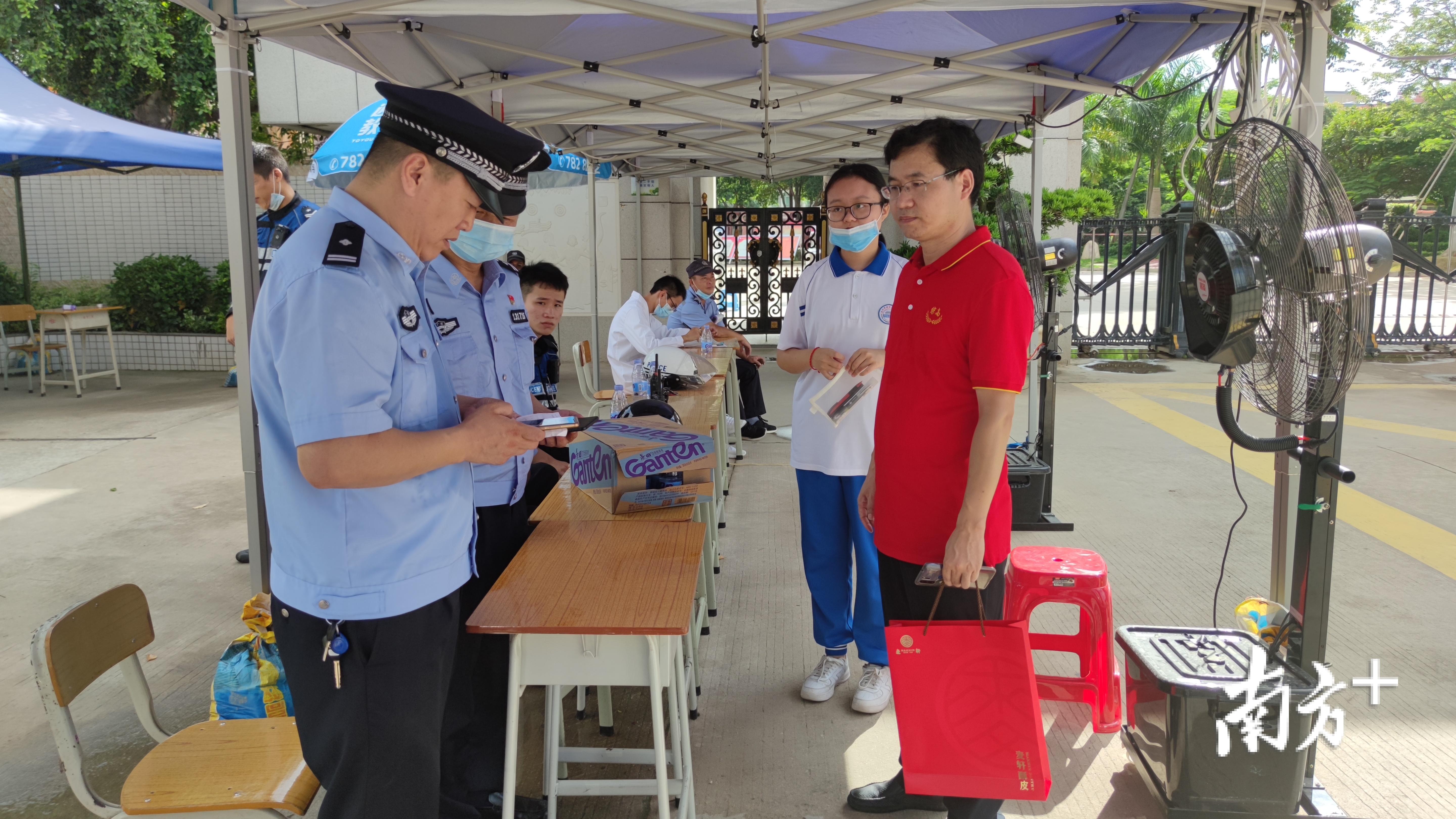 【惠州惠城】7日上午,惠城公安为5名忘带身份证的考生办理临时身份证明,帮助考生们顺利入场考试。(记者/林文通)