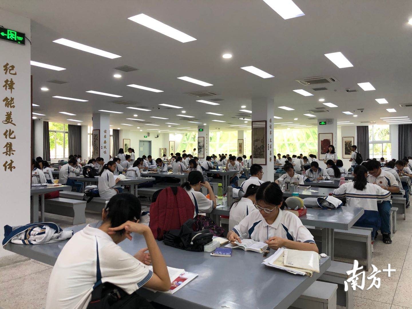 【汕头金山中学考点】上午7点半,汕头市金山中学图书馆自习室,考生们争分夺秒复习。(记者:余丹)