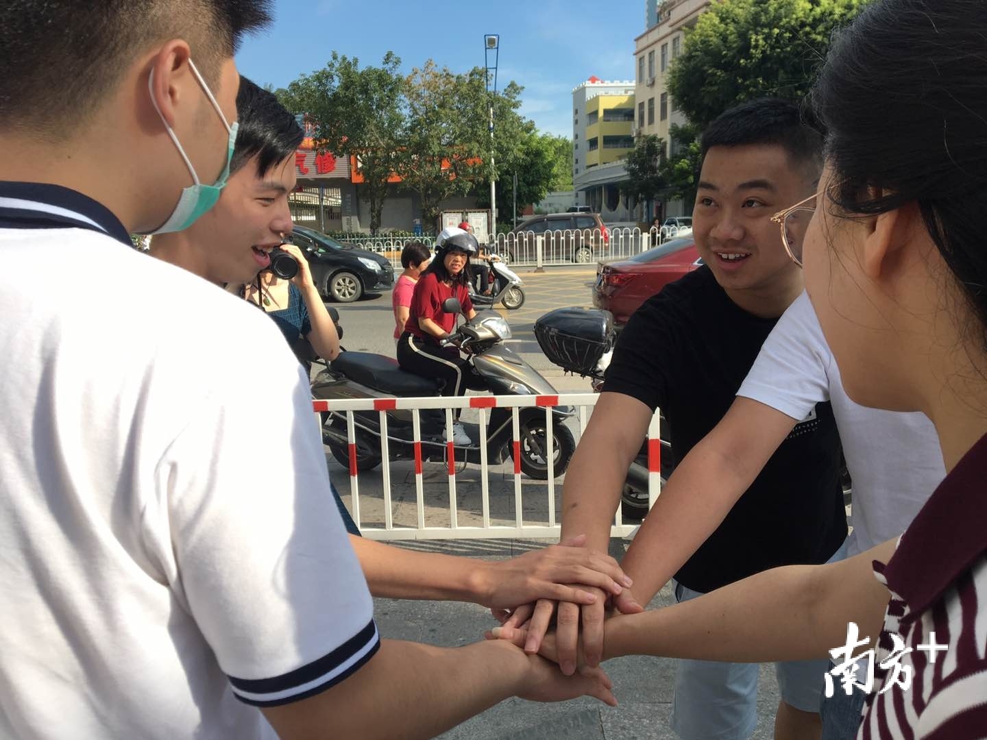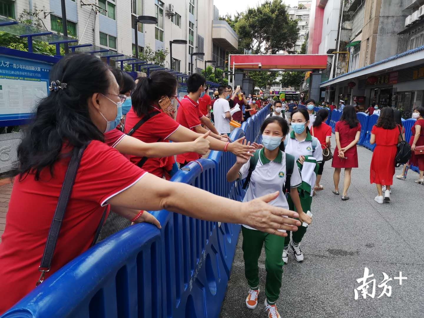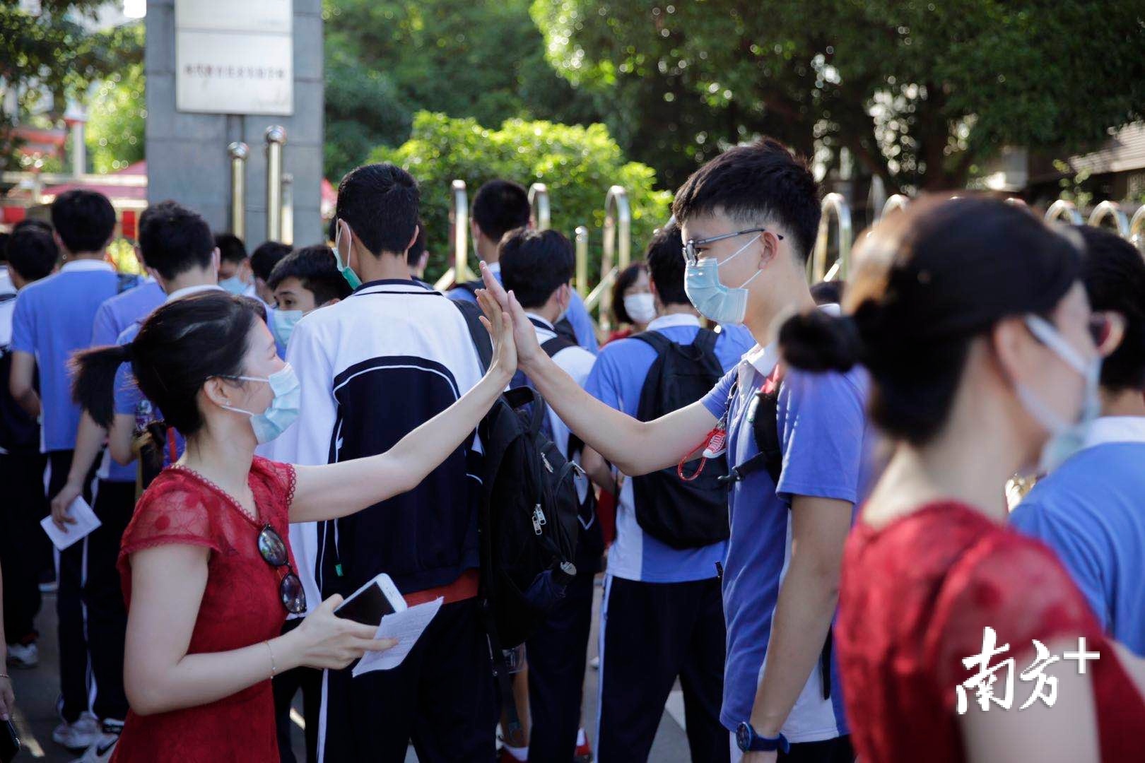 【广州第六中学】老师们与考生击掌,给他们最大的鼓励。 (记者:符超军)