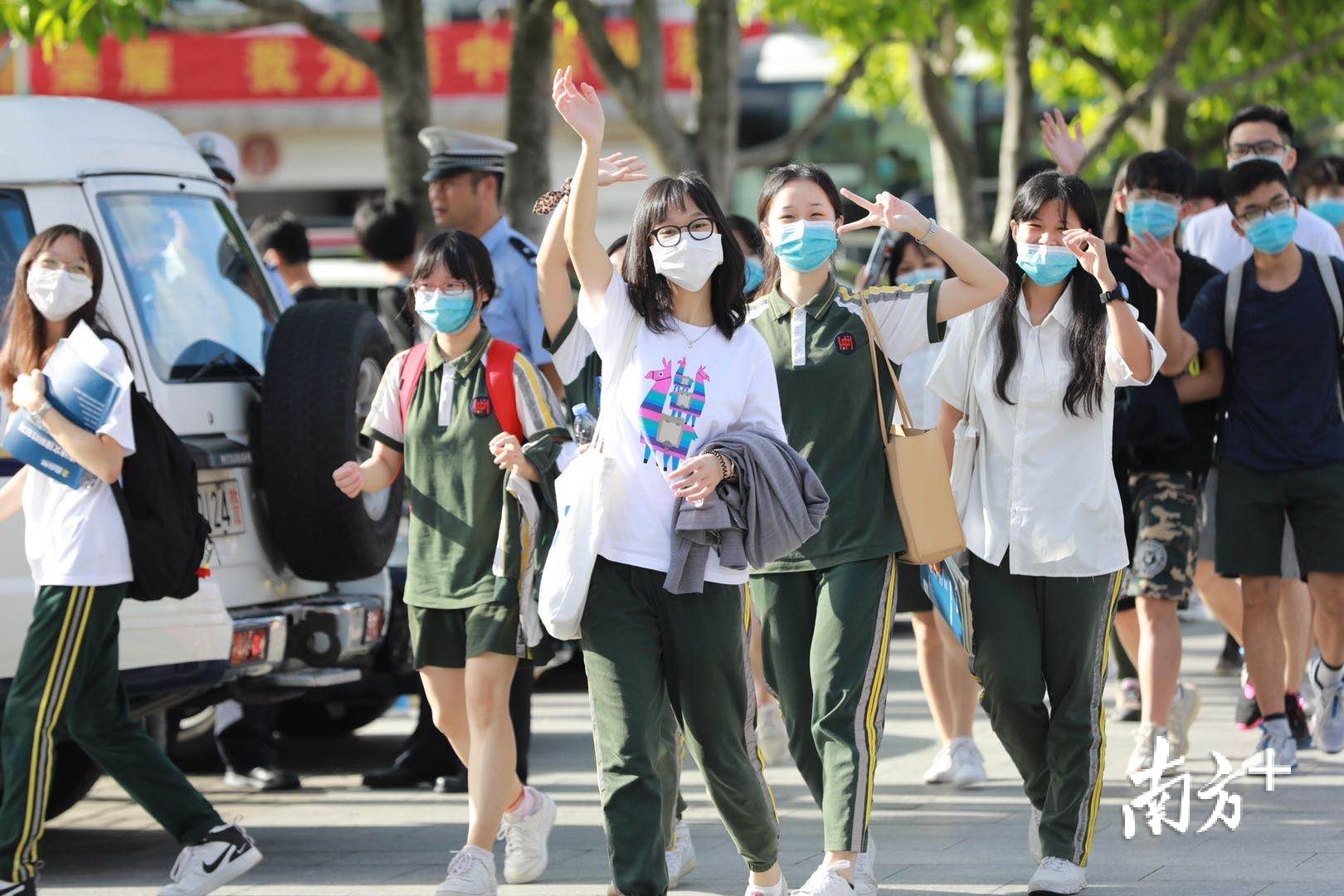 【广州 执信中学】广州执信中学,考生陆续进入考场。(记者:李细华)