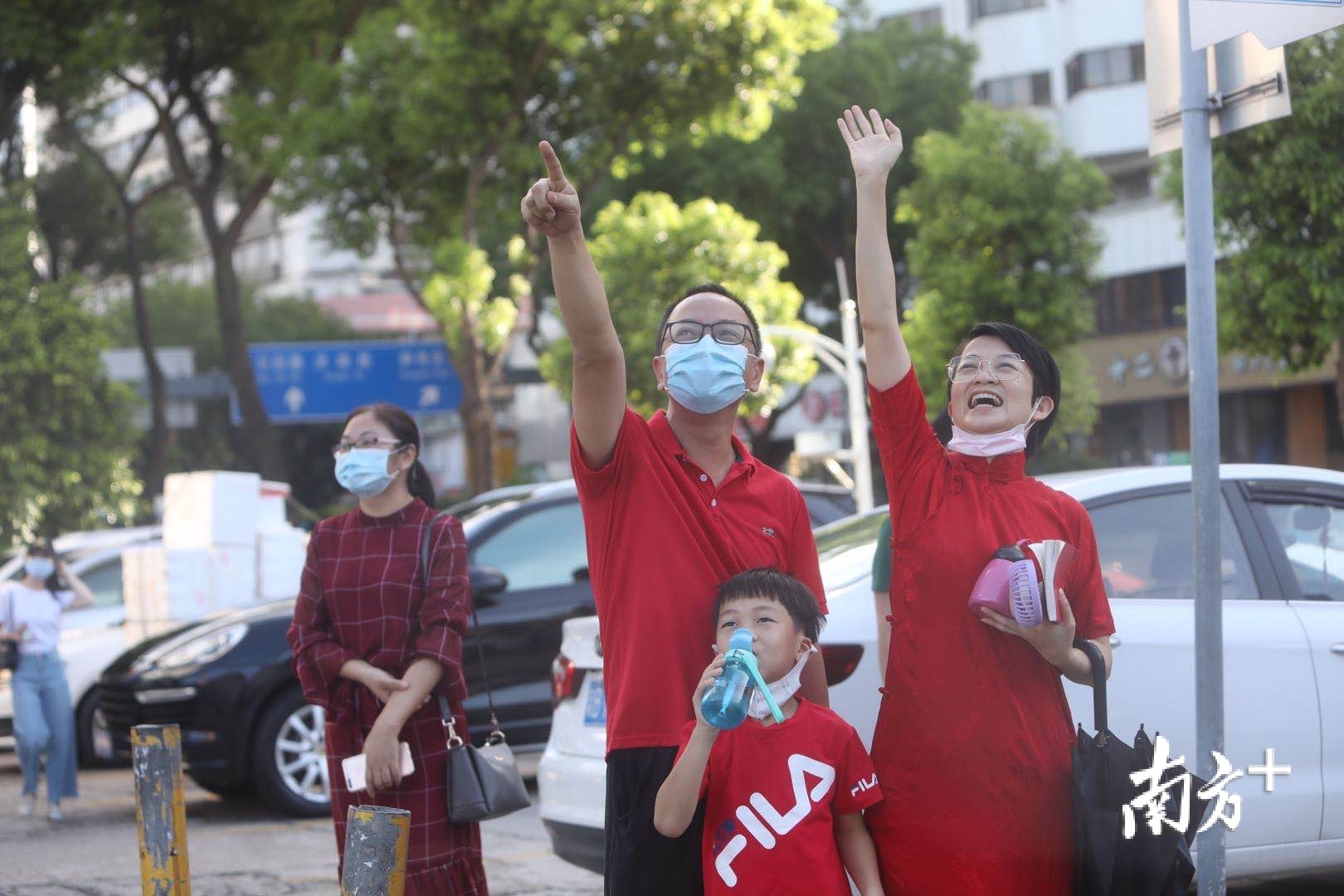 【潮州金山中学考点】亲友团为即将进入考场的考生助威加油。 (记者/苏仕日 实习生/卢文蓉)