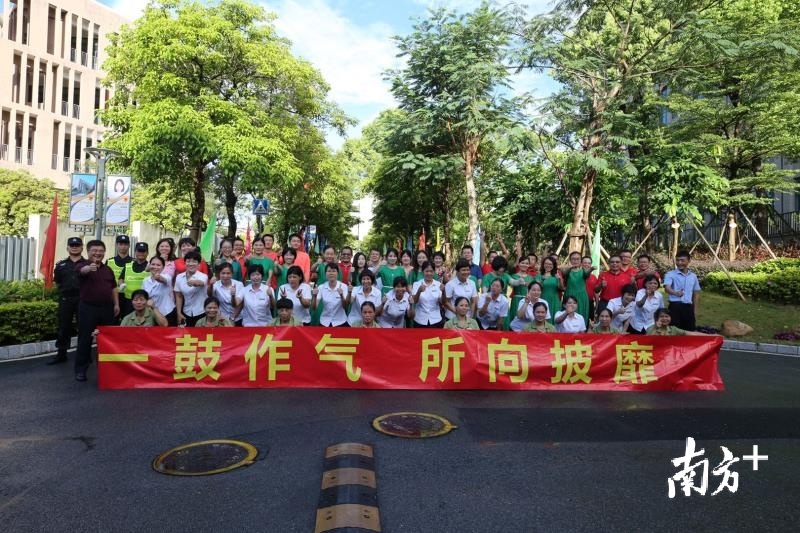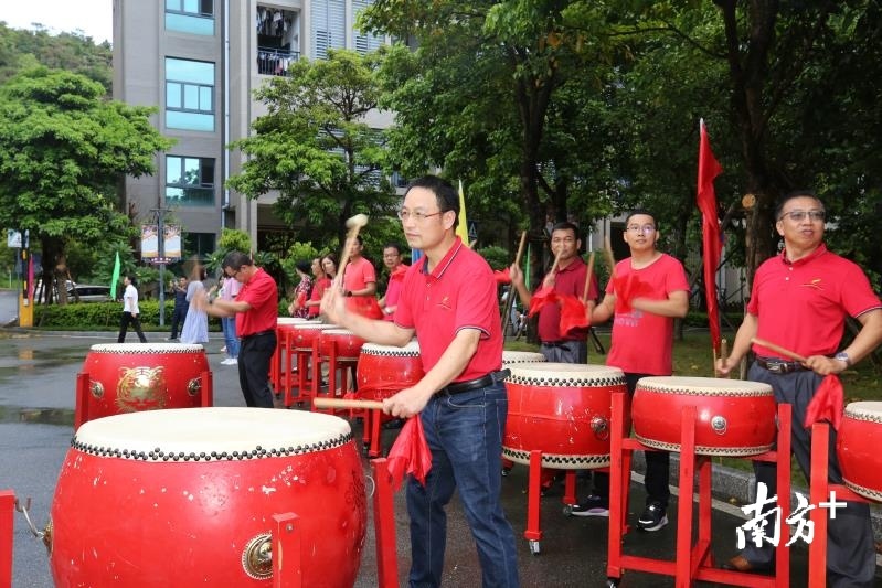 【珠海 市一中平沙校区 】7月7日早上7点,珠海市一中平沙校区的教师齐心击鼓,寓意“一鼓作气,所向披靡”,为今日赴考的学生加油打气。(记者 王韶江 关铭荣 通讯员李芳芳)