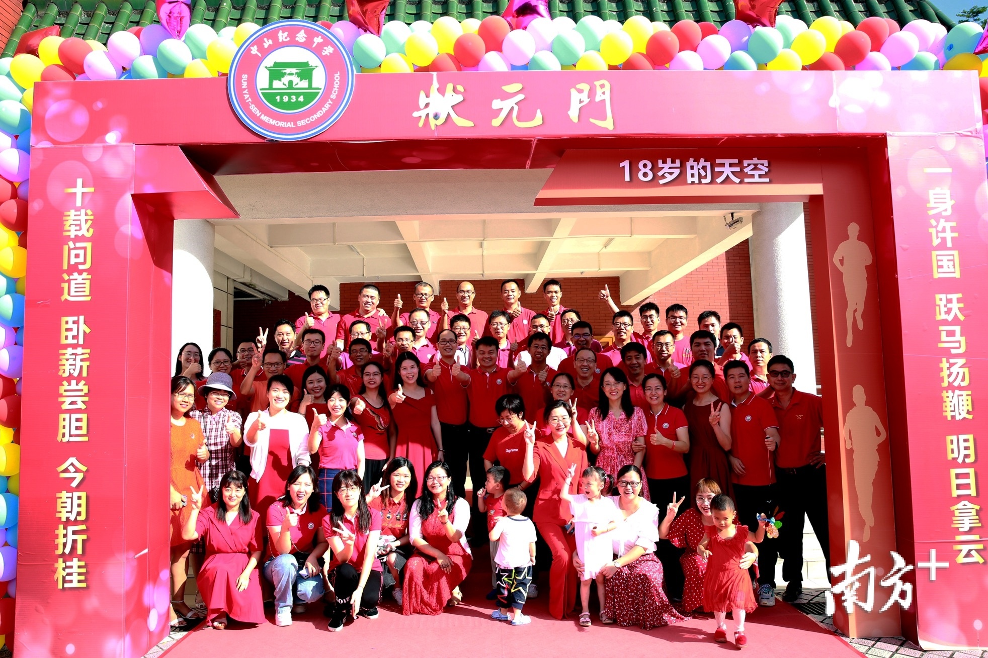 【中山市纪念中学考点】今年的凤凰花开得好。今天一大早下了丝丝小雨,在中山市纪念中学考点上空,出现了一道彩虹。在纪中考点,该校专门设置了一道状元门,今早考生陆续通过状元门步入考场。(记者/廖冰莹 通讯员/梁世锋 贾金珠)