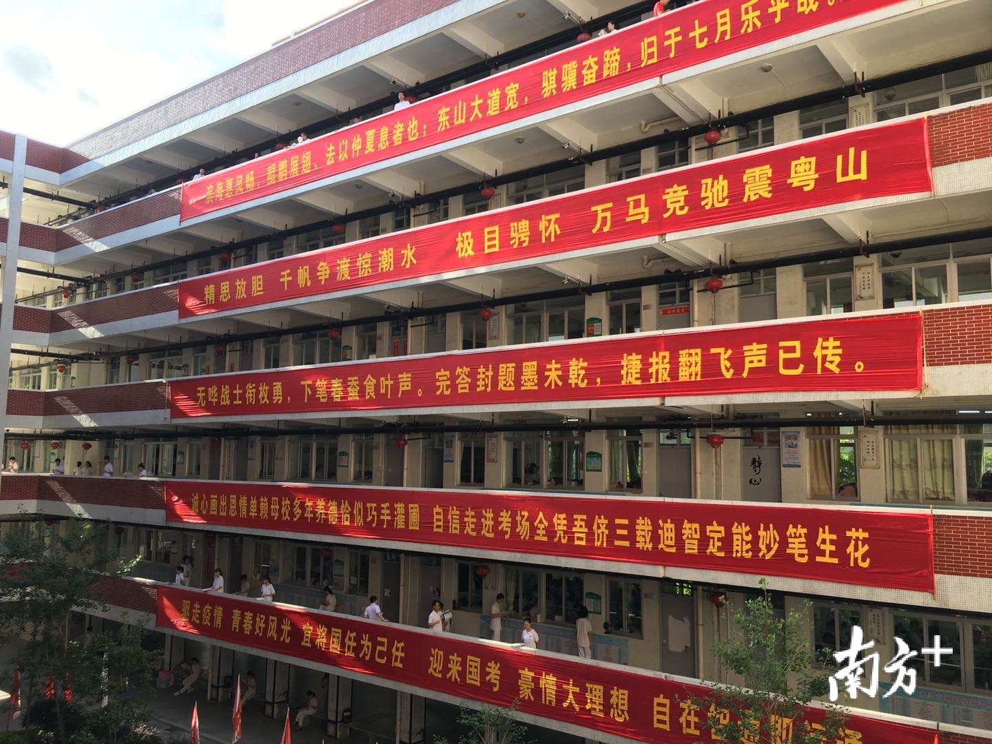 【汕头潮阳实验学校考点】汕头市潮阳实验学校考场,悬挂着各种加油横幅。(记者:余丹 通讯员:宋健刚)