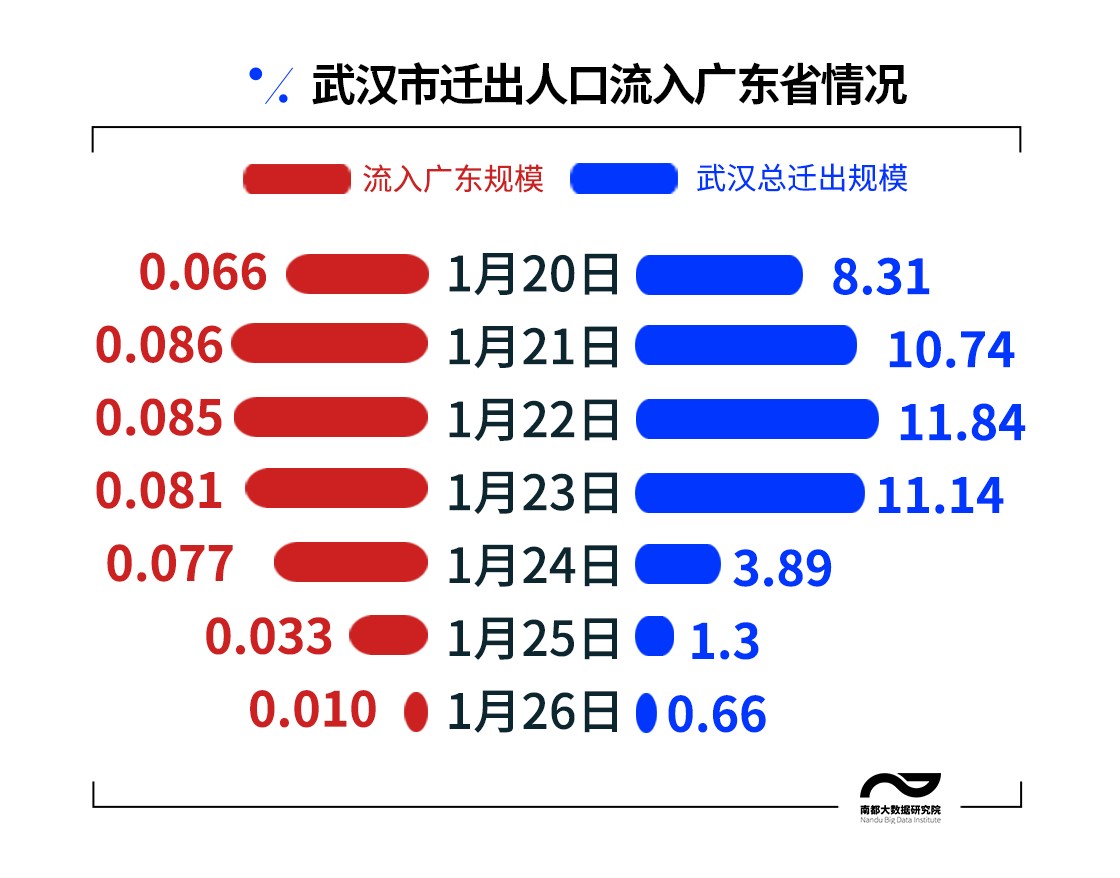 1月26日晚,武汉市委副书记、市长周先旺在新闻发布会上表示,因为春节因素和疫情因素,约有500多万人离开武汉。由于目前的大部分新型冠状病毒感染的肺炎患者还具有输入性病例特征,那么,侧面了解离开的湖北或武汉人的流向,有多少去往广东省内,对下一步广东省防疫工作有着重要指导作用。