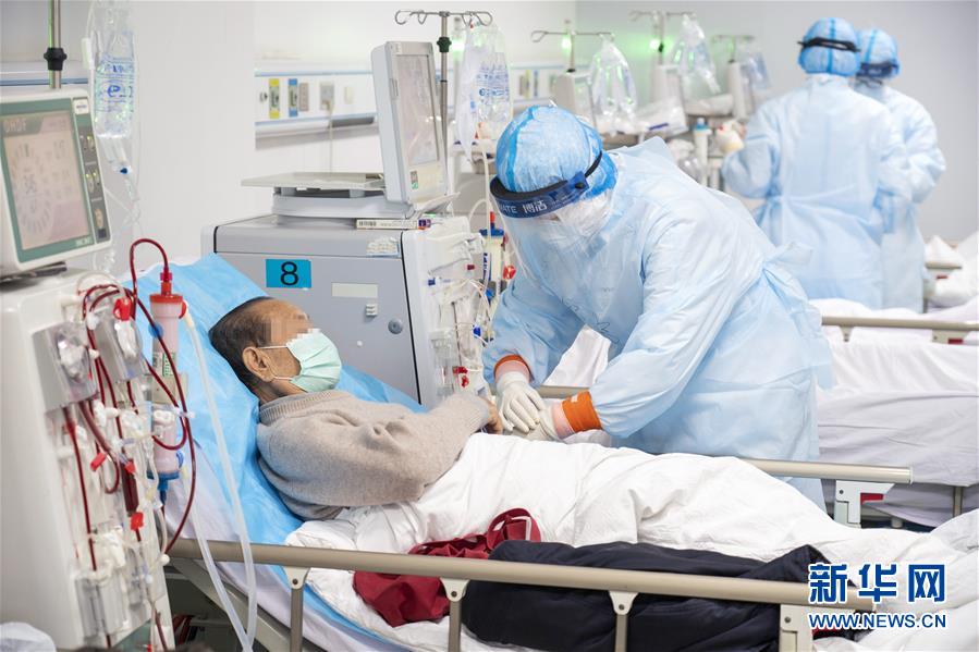 3月21日,在武汉市汉口医院肾内科血液透析室,医护人员为处于新冠肺炎康复期的尿毒症患者做血液透析。 新华社记者 才扬 摄