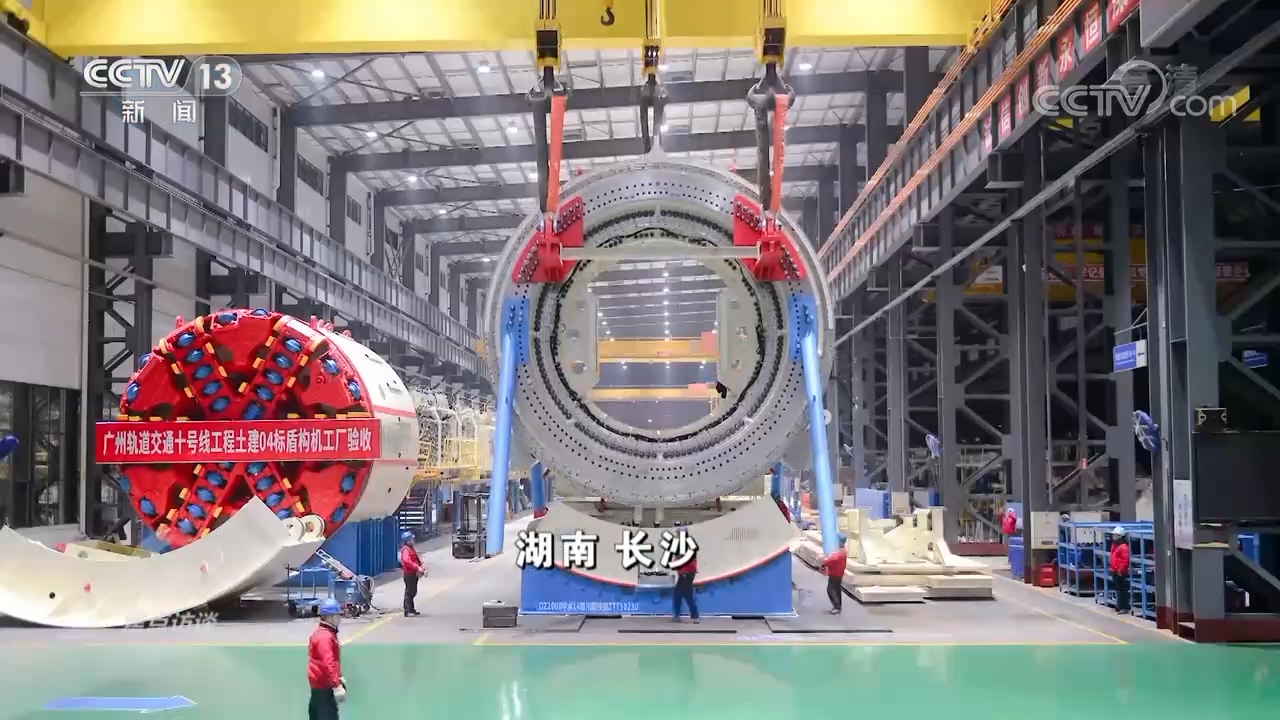 在中国铁建重工集团长沙产业园,一台10.23米的大直径岩石隧道掘进机正在组装作业,下线后即将参与高原铁路隧道工程建设。