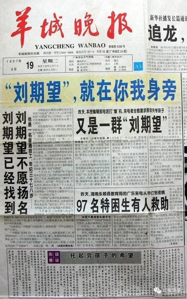 “当时希望工程正在轰轰烈烈开展,‘大眼睛女孩’苏明娟的照片深深打动了我,恰好看到你们的那篇报道,其他报纸上也登了永顺县的一些情况,我就按照《羊城晚报》的报道打电话到永顺县教育局。”刘广湘说。袁祖顺则迅速在永顺一中高二年级落实了资助对象朱定花,当年10月上旬,第一张署名“刘期望”的100元汇款单寄给朱定花,此后每月准时寄来。