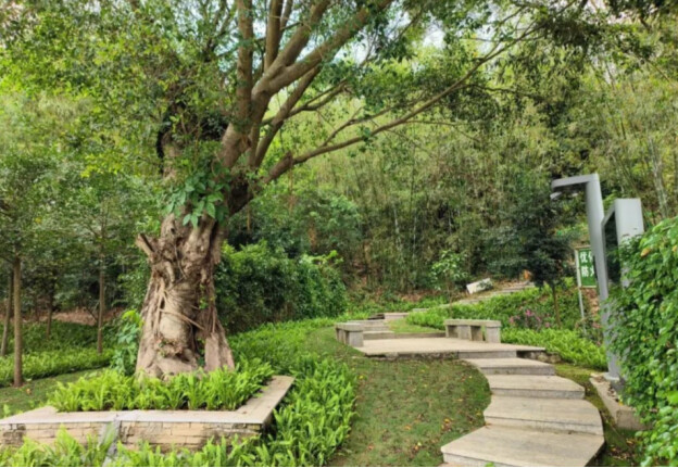 2023年春天,村里开工建设榕树风貌带项目,本着不砍树、保护耕地、用本土苗等原则,在闲置地块种下乔灌木近3000株。一条以“三点三线”串联的绿色廊道就此诞生,“骑乐榕榕”“绿荫榕道”“欢榕大道”三条路径连接起“绿美榕景”“时光榕林”“静心榕园”三个节点,不仅构建起骑行慢行系统,更让村庄在绿意中连缀成画。