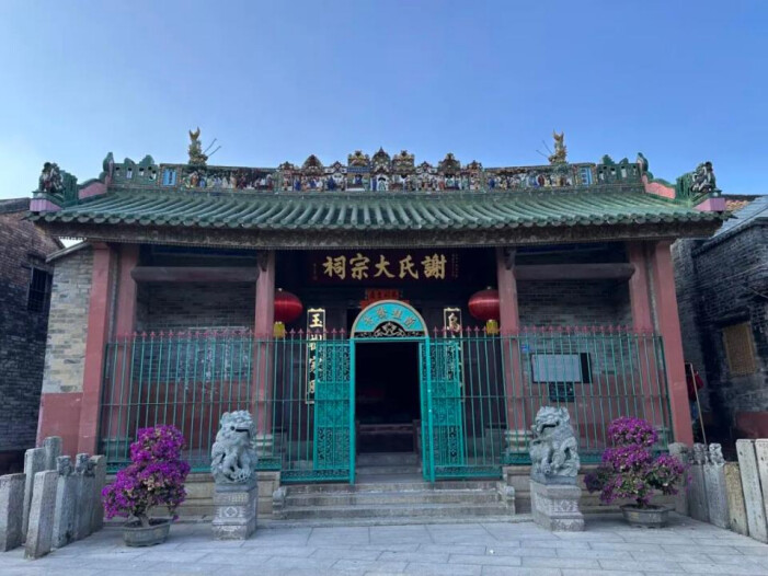 在村落中轴线上,谢氏大宗祠巍然屹立,门楣上的木雕栩栩如生,檐角的陶塑色彩虽历经岁月而略显斑驳,却更添几分历史的厚重。