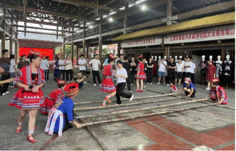 (体验瑶族竹竿舞)