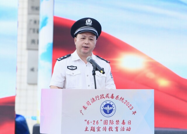 张友生在致辞中指出,近年来,全省司法行政戒毒系统按照司法部统一部署,锚定无毒广东目标,树牢戒毒为民宗旨,全力做好戒毒收治,持续保持安全稳定;大力推进科学戒毒,推进全国统一戒毒模式实体化整体化一体化常态运行,与港澳及全国兄弟省份同行加强理论研究,形成了一批行之有效的戒治成果;拓展延伸戒毒职能,与地方合作共建社区戒毒康复指导站222个,打通巩固戒毒成效最后一公里;深入开展毒害预防宣教,2022年以来开展“六进”活动1300多场次,受众超过750万人。他呼吁省、市有关部门和社会各界一如既往关心支持司法行政戒毒工作,希望广大青少年自觉系好拒毒防毒第一粒扣子,要求全体戒毒人员不负社会期望厚爱,争取早日脱离毒海,顺利回归社会。