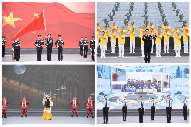 在戒治成果展示环节,广东司法警官职业学院师生伴随着雄壮的中国人民警察警歌,进行了警体队列表演;省增城所民警和戒毒人员一起演出了原创戒治歌曲及手势操《以信立行走天下》;深圳二所表演了展现戒毒民警创新戒治方法、关爱帮扶戒毒人员的歌舞《把梦照亮》;特邀嘉宾、非遗传承人展示了剪纸、白字戏、书法等传统文化;省南丰所表演了反映解戒人员坚定戒毒信念、成功实现创业的音乐情景剧《冶金师》;广州市增城区职业技术学校师生和省增城所戒毒人员共同表演了活力满满的健美操和康复训练健身操;省女子所带来了展现戒毒民警坚定理想信念、忠诚履行职责的歌舞表演《追光》,并穿插进行了戒治典型访谈活动。一个个精彩的节目,充分展示了广东司法行政戒毒系统积极参与禁毒攻坚行动取得的成果,反映了司法行政戒毒民警在教育戒治工作中的方法创新和敬业奉献,展现了戒毒人员在场所的科学戒治和关心帮扶下摆脱毒害、涅槃重生的曲折历程,表达了全省司法行政戒毒系统坚决打赢新时代禁毒人民战争,为建设更高水平的平安广东、法治广东贡献力量的信心和决心。