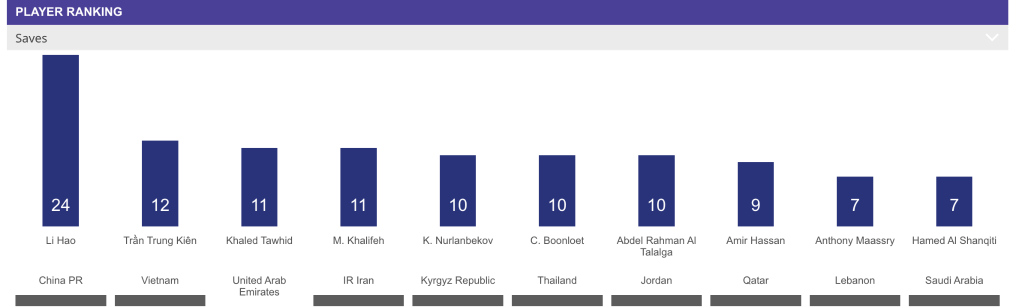 贡献了赛事排名第一的24次扑救