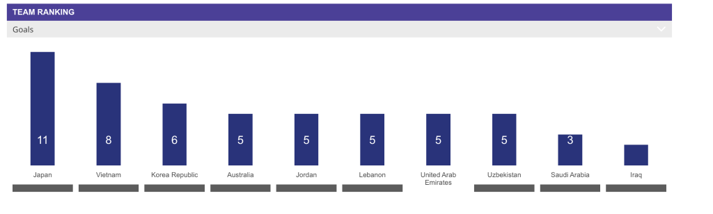 仅次于攻入11球的日本队
