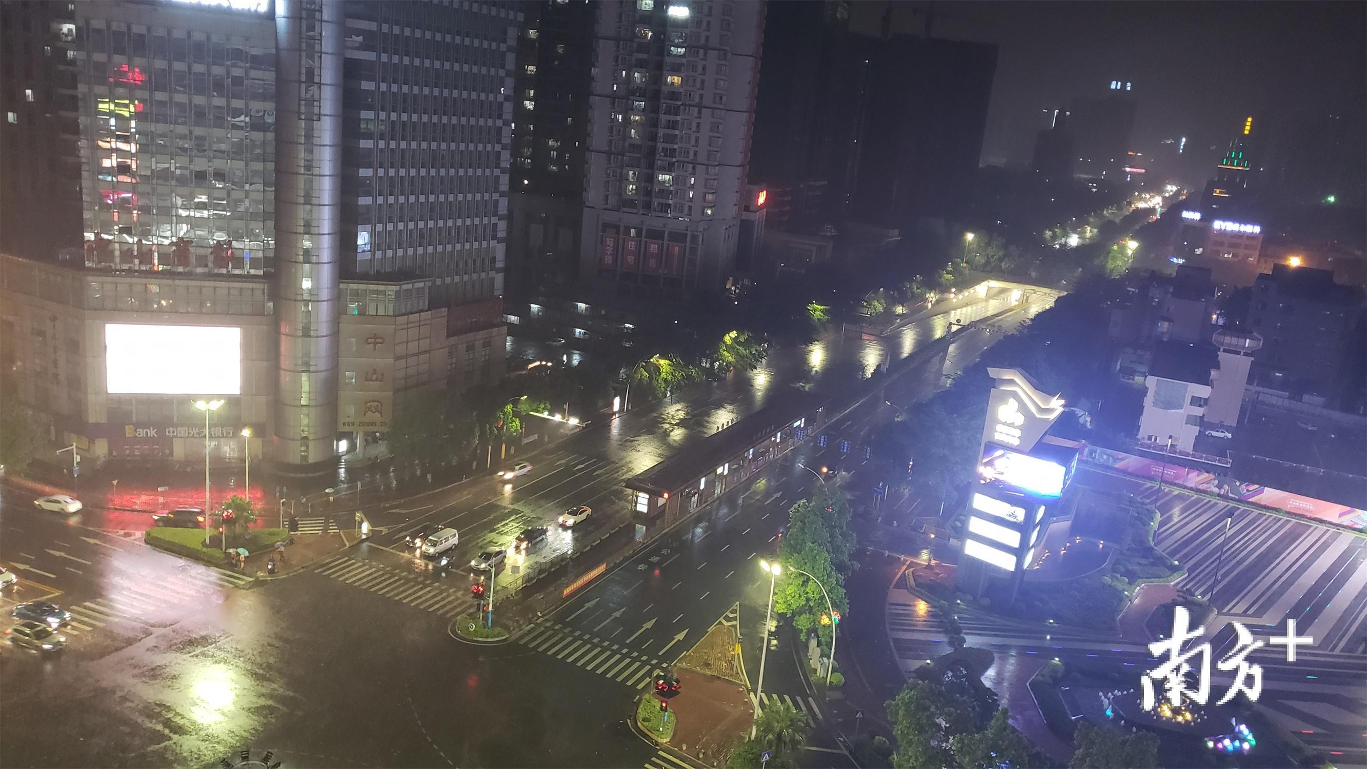 11日21时正,中山主城区中山四路附近的雨势、风势渐减。