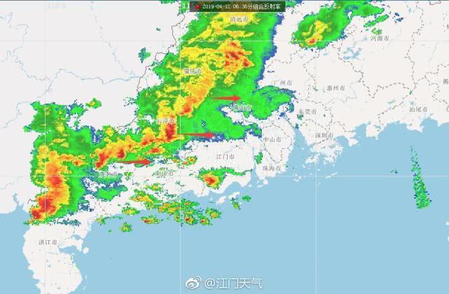 目前我省西部有强雷雨云带发展东移,今天江门仍将有明显降水,并伴有雷暴、短时大风等强对流天气,请注意防御!!