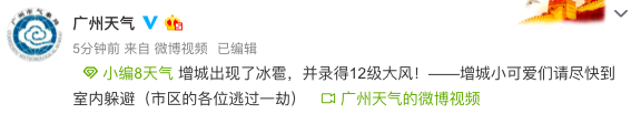 @广州天气消息,冰雹云团已移出增城区,增城区气象台于04月11日17时01分解除增城区冰雹预警信号。