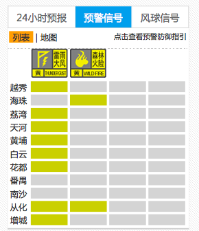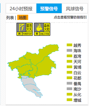 广州多个区发布雷雨大风黄色预警,@广州天气提醒大家,下班高峰期,注意防御,风大雨急时尽量在安全的市内躲避。