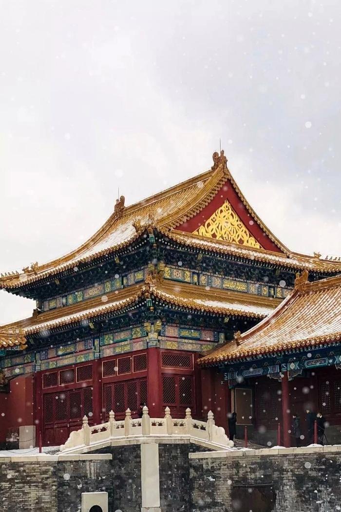 当第一片雪花悄落红墙,飞檐覆上蓬松的白,这座六百年的城,悄然变回记忆里的紫禁城。