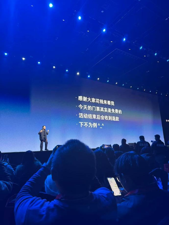 现场一度出现观众高喊“退票”的情况。随后,罗永浩在台上宣布,所有已购票观众将获得全额退款,门票最终实现“免费”。此前,该活动门票分为300元至1000元不等,且在售票平台明确标注“不可退票”。罗永浩在现场鞠躬致歉,并表示“发生了一些事情,后续会发文解释,希望大家理解”。