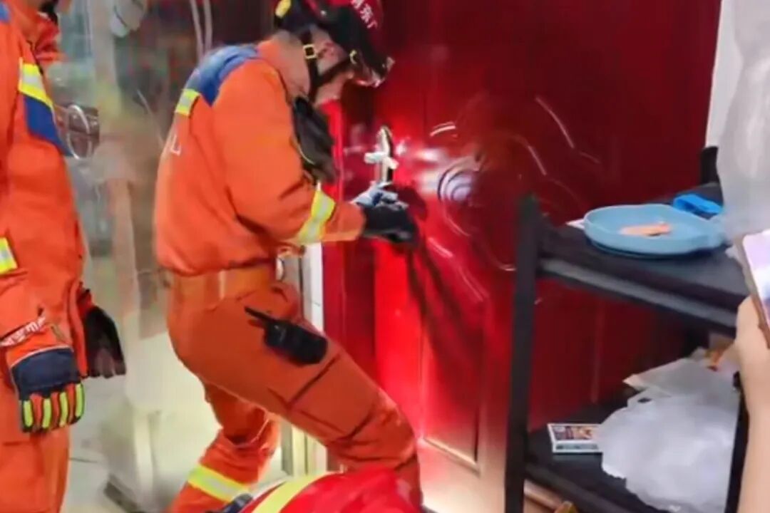 消防员抵达现场后,焦急万分的家长们纷纷向消防员讲述情况。原来,两名幼童都是1岁半左右,是两兄弟。事发当晚大家正在家里聚餐,兄弟俩不知道什么时候跑到房间内玩耍,一不小心就把房门锁上,家长们在外面多番尝试依然无法打开房门,于是报警求助。