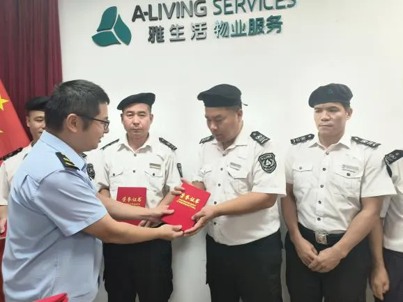 几天后,中山市消防救援支队城区大队联合西区街道应急管理局、当地社区党群服务中心等单位,为参与火灾扑救的10名物业保安予以集中表彰。