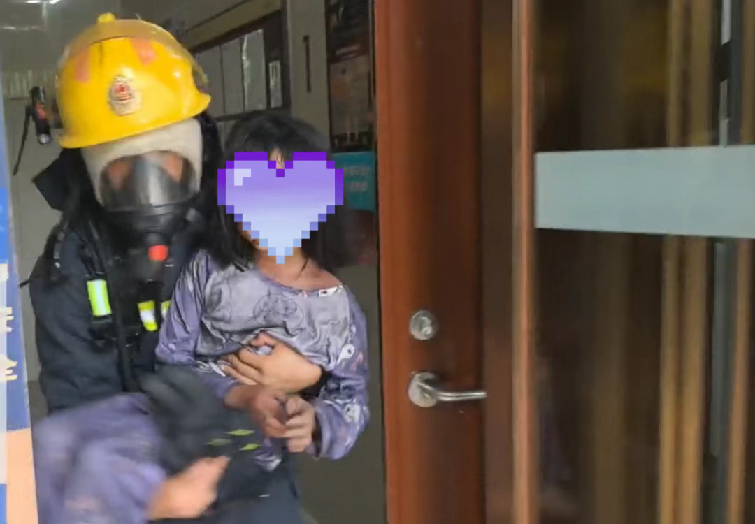 小区物业管理人员发现火情后果断报警,提前联系业主并询问房间密码。消防救援人员到场后,通过房门密码解锁进入火场,快速铺设水带出水并将明火扑灭,并营救出3名被困人员。