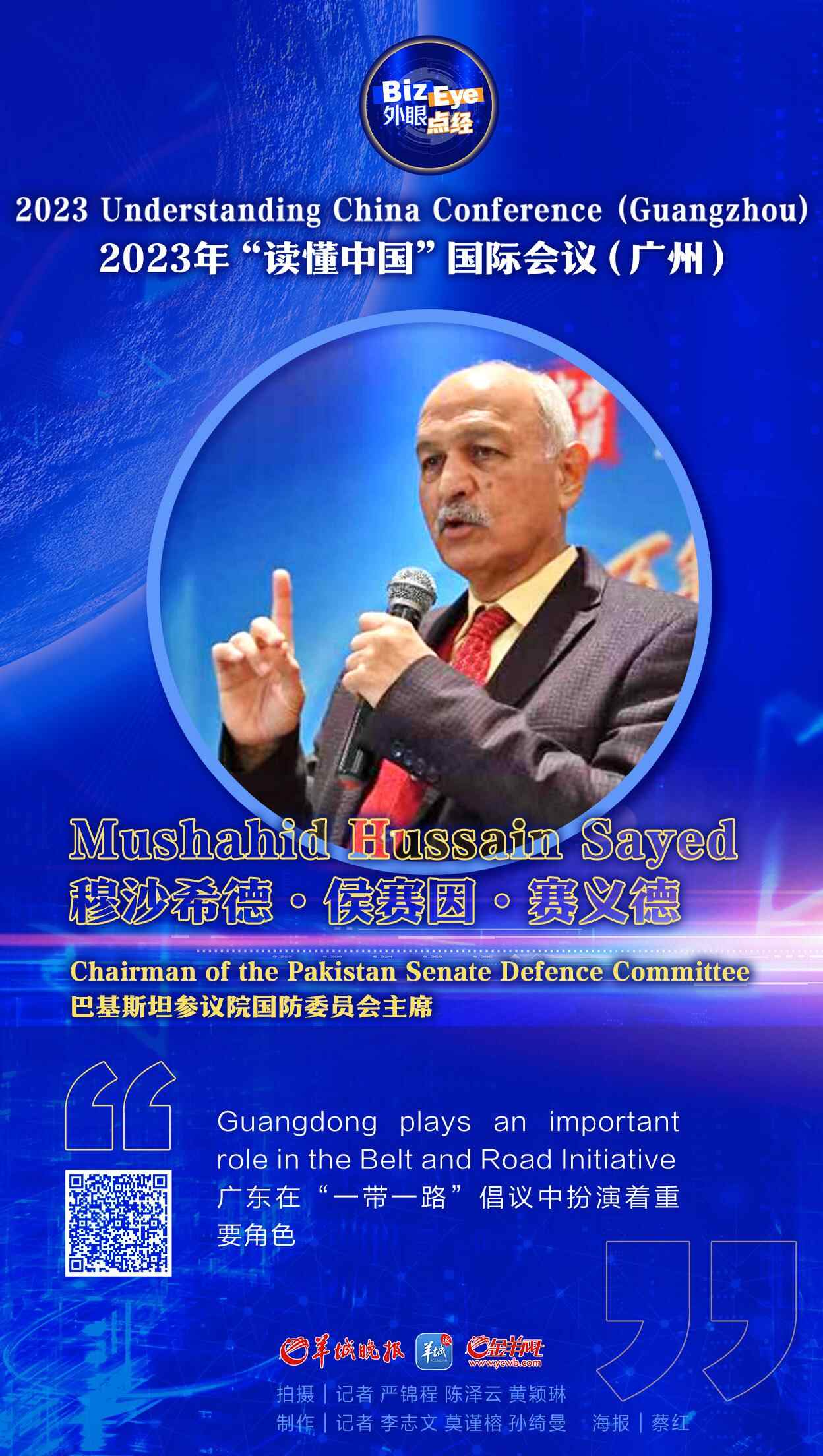 How to read China? How to see Guangdong's role in global trade? From December 1st to 3rd, the 2023 Understanding China Conference is being held in Guangzhou, bringing global politicians and experts together. Today,we took an opportunity to visit Mushahid Hussain Sayed, Chairman of the Pakistan Senate Defence Committee and Chairman of the Pakistan-China Institute, to hear his opinions about China.