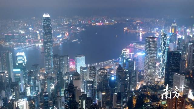 港岛和九龙两颗明珠映在香港整个夜景之中