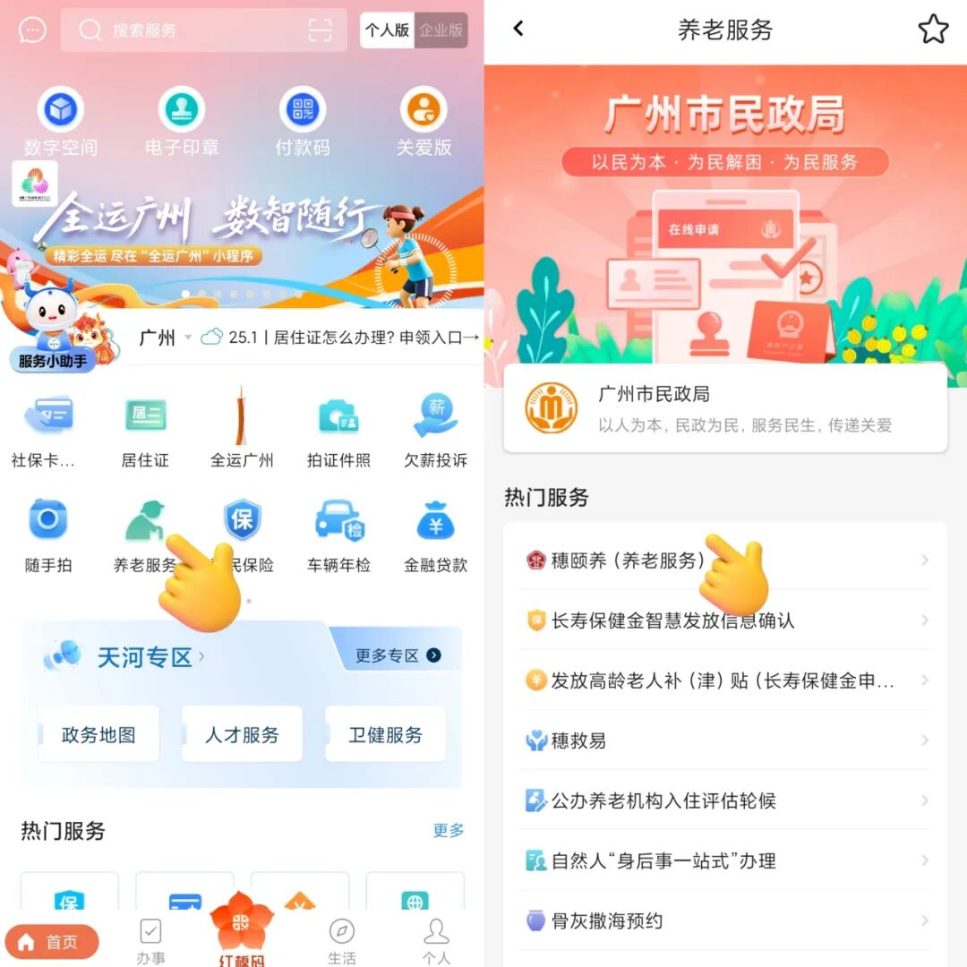 穗好办全新上线“养老服务”专区,包含穗颐养、长者长寿金等30余项养老服务智申办、养老设施资源智查询,将贴心服务直接送到指尖。查看详情
