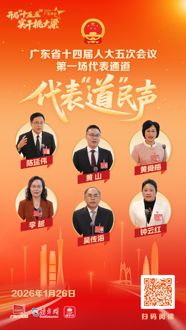 1月26日,广东省十四届人大五次会议第一场“代表通道”如期开启。6位来自不同领域的广东省人大代表,带着深耕一线的调研成果与履职感悟,围绕科技创新、大湾区发展、乡村振兴等主题发声。