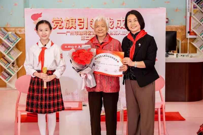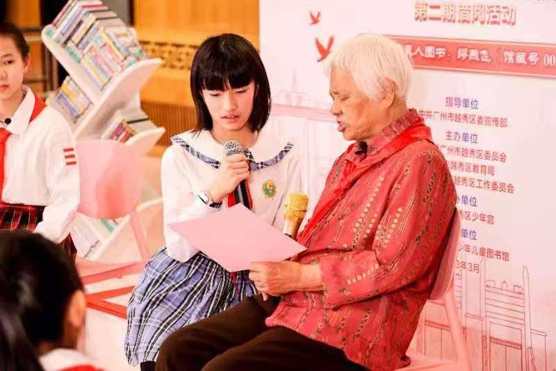 近日,在越秀区委宣传部的指导下,由越秀团区委、区教育局、区少工委联合主办的党旗引领我成长——广州市越秀区青少年“红色真人图书馆”第二期借阅活动在越秀区少年儿童图书馆举行。该活动属于“英雄花开英雄城”越秀区2023传承弘扬红色文化系列活动之一,活动邀请了著名的长篇小说演播员、配音导演——88岁的缪燕飞作为馆藏号为002的“红色真人图书”。
