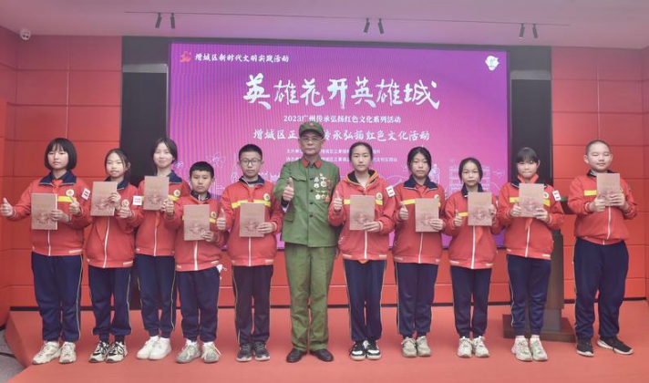 活动中,增城区关工委常务副主任、英模报告团副团长刘湛洪为大家生动地讲述了红色故事,通过“身边的党史”与“身边的英雄”,传颂英雄故事,传承红色基因。区关工委英模报告团成员黄香源将其亲自撰写的红色书籍赠予了正果镇中心小学的学生代表,勉励学生要以革命先烈为榜样,珍惜学习机会,努力练就本领,奋发图强、为国争光。
