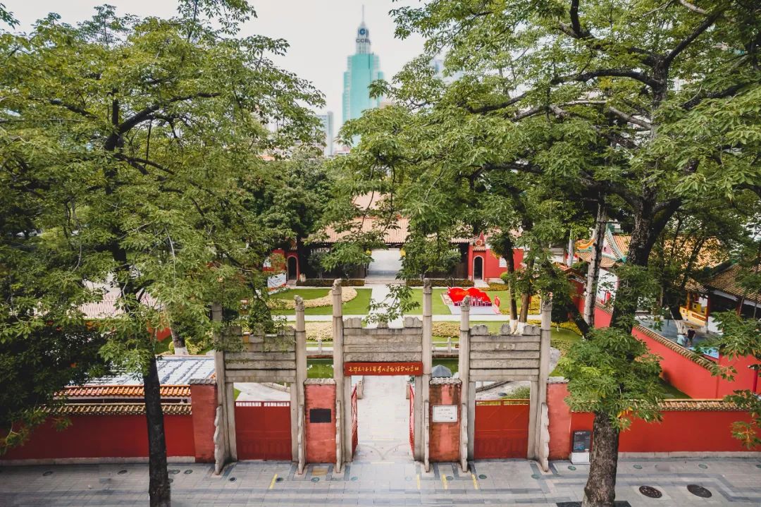 毛泽东同志主办农民运动讲习所旧址纪念馆,位于广州市中山四路42号。旧址原为番禺学宫(孔庙),始建于1370年(明洪武三年)。如今,红墙高耸、屋顶金碧,在湛蓝的天空下,显得格外辉煌。