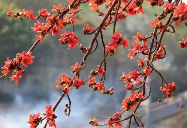 又是一年春,又见木棉红。南国三月,广州街头,一棵棵木棉树挺立,一片片红云绽放枝头。