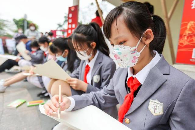 在岭南文化浸润中,红色文化的熏陶下,青少年们一笔一画皆是红棉精神的传承。