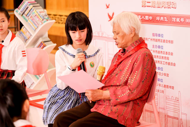 在“红色真人图书”,88岁的著名长篇小说演播员、配音导演缪燕飞坐在小学生间,用粤语朗诵了赵一曼烈士写给儿子的遗书,越秀“红色真人图书”带领中小学生在每个别样人生中,体会生命的意义;